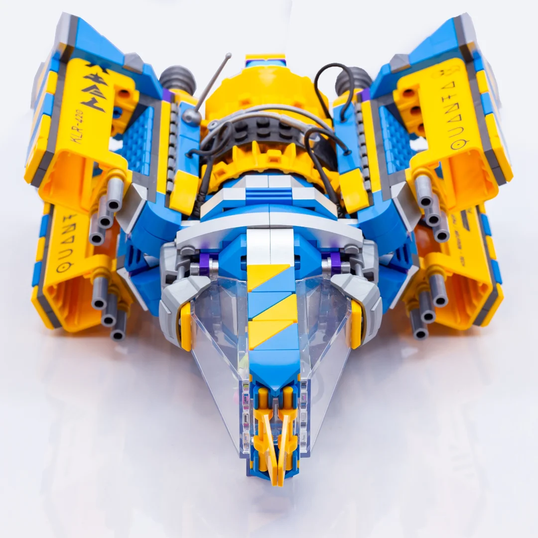 Per Fabien’s lore, the KLR-420 starfighter was built by QUANTA, a manufacturer that has created other craft in Fantapolis with a similar aesthetic, like this recent addition of a prison transport ship with VTOL engines.