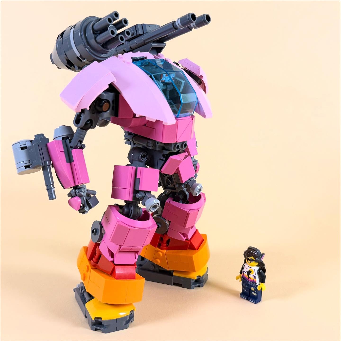 @mk.13_7 ‘s main source of pink bricks was the D.va mech from Overwatch, so the builder modded that model with extra armaments.